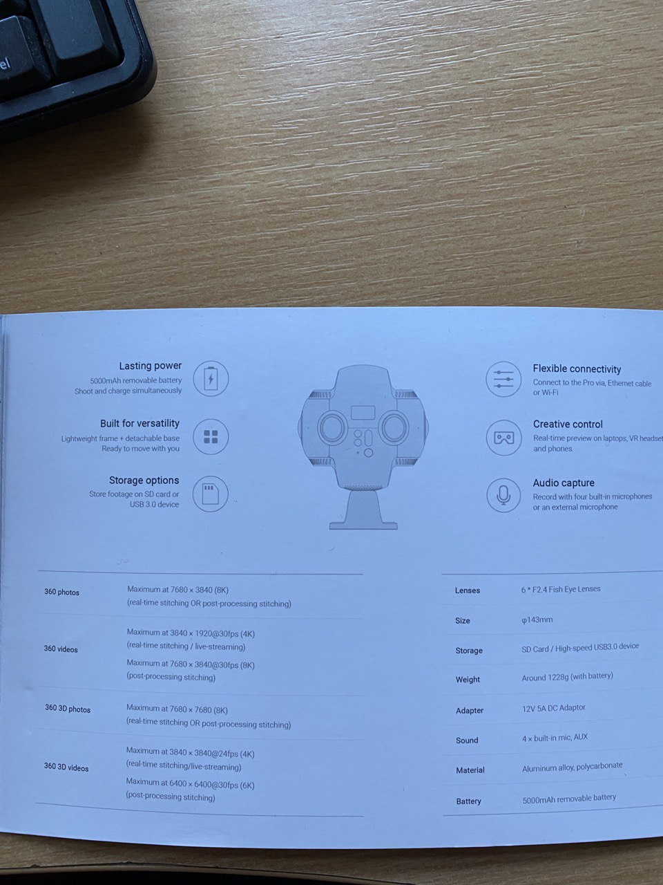 Insta360 Pro - VR in 8K, ve velmi dobrém stavu v originálním kufru. Kameru je možné jednoduše ovládat pomocí mobilní aplikace, která slouží jako remote control a umožňuje wifi připojení a streamování. Kromě veškerého originálního příslušenství obsahuje sada navíc také náhradní baterii a přenosnou kabelu do terénu.