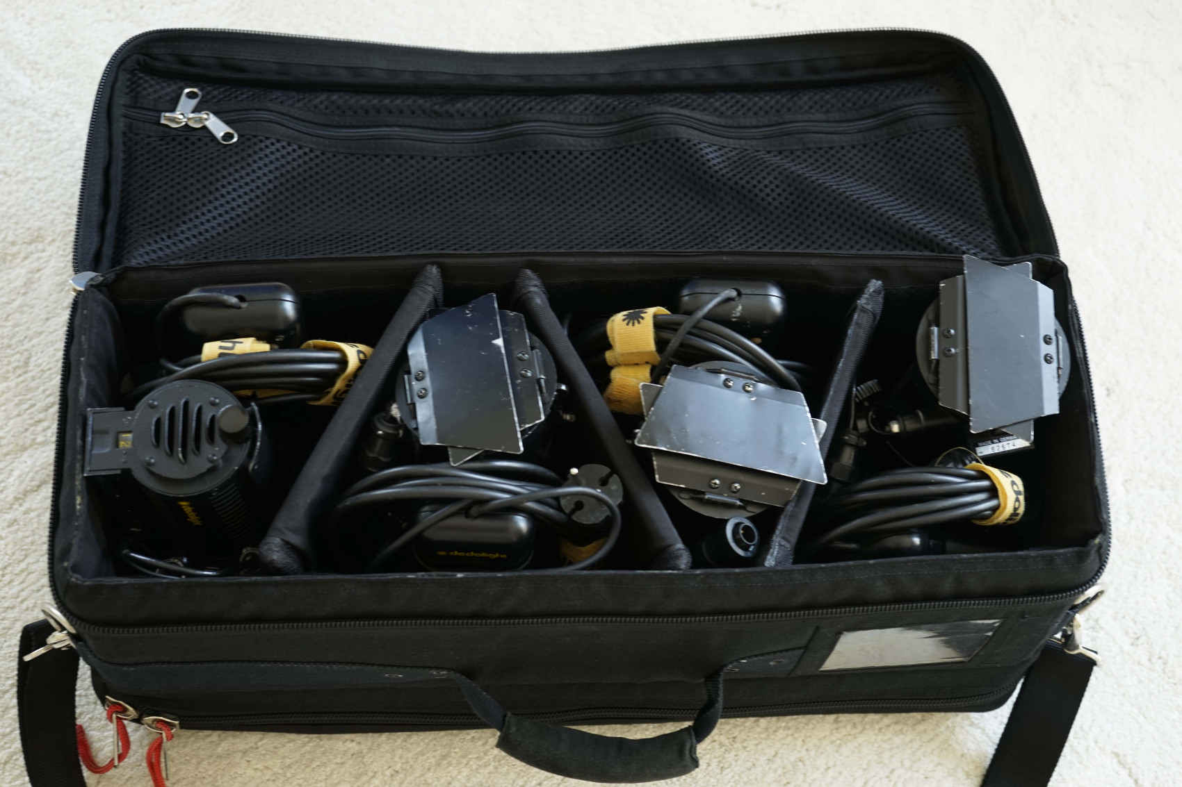 Lampy jsou v dobrém stavu, nebyly nikdy pronajímány - pouze jeden uživatel. Plný funkční stav. Na fotografiích jsou ilustrovány drobné známky opotřebení a kablíky mají těsně u lamp prodřenou vrchní izolaci, ale lampy jsou naprosto funkční.
